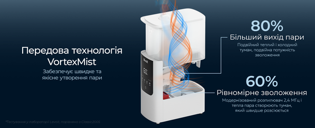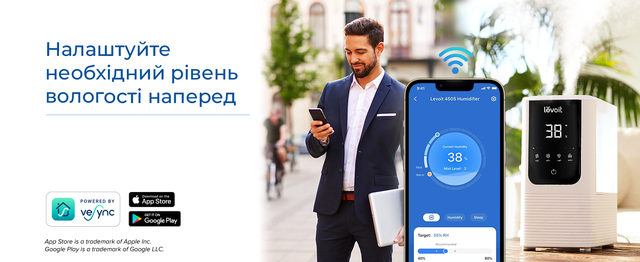 - Розумне керування: керуйте налаштуваннями, створюйте графіки, переглядайте рівень вологості в реальному часі та багато іншого за допомогою безкоштовного додатку VeSync.