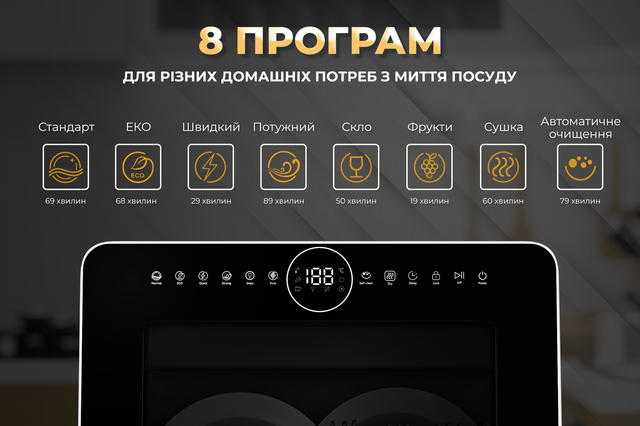 💧 Раціональне споживання води — лише 89 літрів на повний цикл миття. Бережіть ресурси й зменшуйте рахунки за воду.
