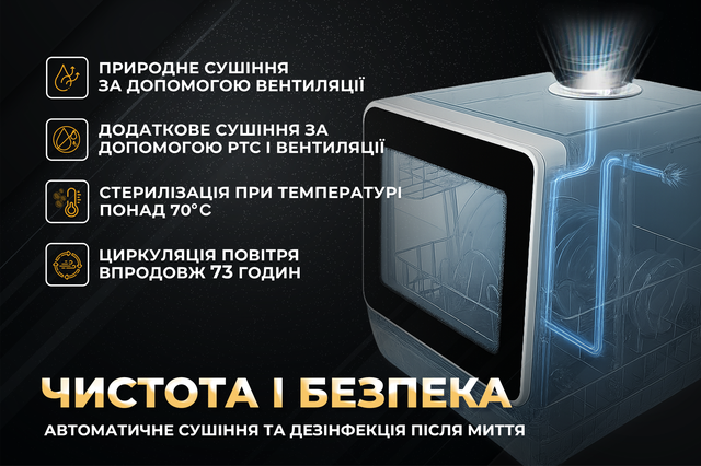 🍽️ Вміщує до 3 кг посуду — це 2–3 стандартні сервізи, ідеально для сімей з 1-2 осіб або для тих, хто орендує житло.